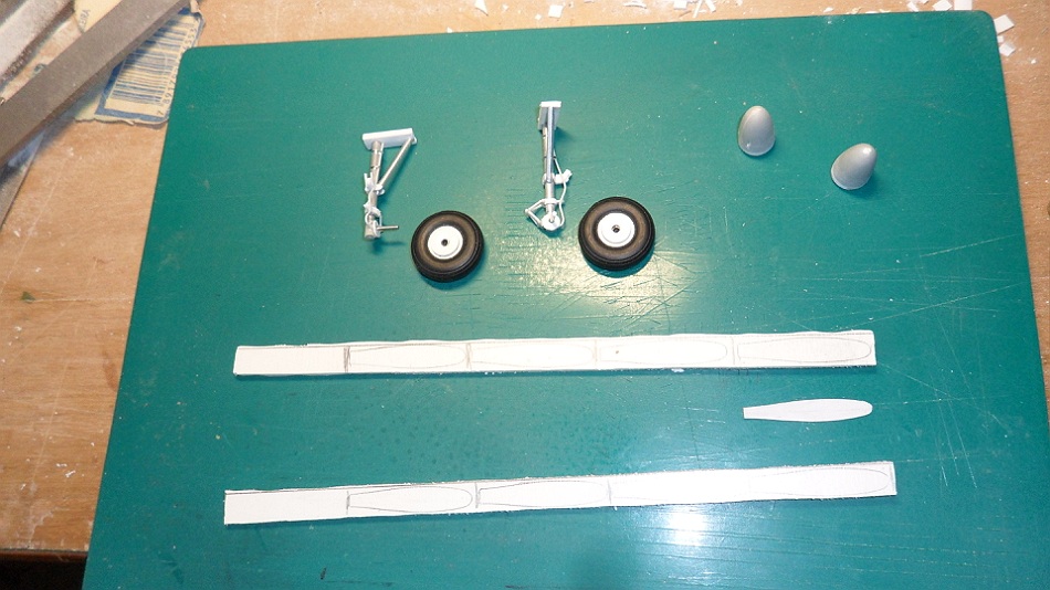 "The spinners are made from some drop tanks and luckily this time I a found two main wheels of an old F-111 in the spares box which were just the right size! I even found a Lightning nosewheel which after some modification fitted as the tailwheel. The undercarriage legs had to be sturdy, so they are made out of two sizes of aluminium tubing with some plastic details.