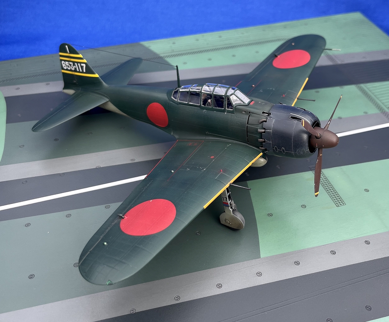 'This is the 1/48 Fine Molds A6M5 Model 52 Zero (Nakajima), which was finished recently. The base is the older Eduard deck, painted a few years ago.